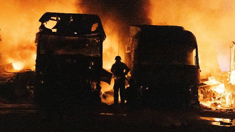 В Сумах из-за ночной атаки произошел масштабный пожар после удара по стоянке грузовых автомобилей.
