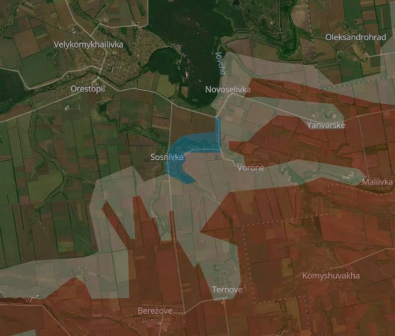 В то же время, по данным паблика, российские войска продвинулись к югу от Сосновки.