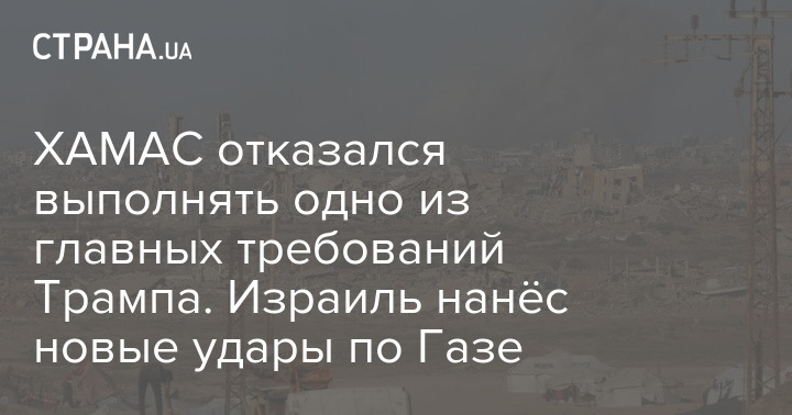 ХАМАС отказался выполнять одно из главных требований Трампа. Израиль нанёс новые удары по Газе