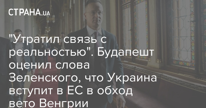 Глава МИД Венгрии Петер Сийярто отреагировал на слова украинского президента Владимира Зеленского о том, что Украина может вступить в Евросоюз в обход вето Будапешта. По словам Сийярто, Зеленский "полностью утратил связь с реальностью".