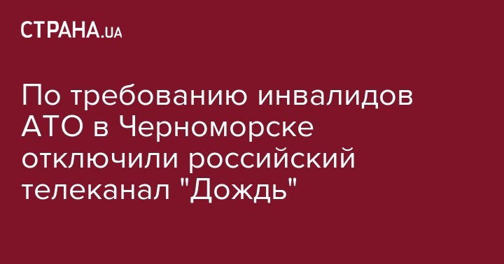 Активисты некоей общественной организации "Ветераны и инвалиды АТО "Рапира" пришли в офис черноморского кабельного оператора "Клен" и потребовали немедленно убрать из эфира российский телеканал "Дождь". Также они потребовали вернуть в эфир украинские каналы, отключенные в новогоднюю ночь.