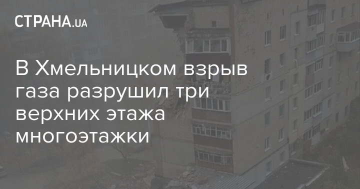 В Хмельницком в результате взрыва газа разрушены три верхних этажа многоэтажки. В ходе происшествия пострадали пять человек.