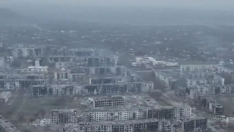 На видео можно заметить, что все высотные дома города, что находятся в поле зрения, стоят с выбитыми оконными рамами и следами пожаров. У многих обрушены перекрытия и пробиты крыши.