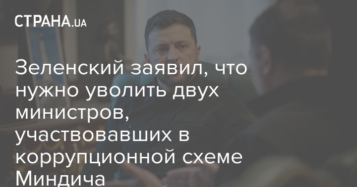 Зеленский заявил, что нужно уволить двух министров, участвовавших в коррупционной схеме Миндича