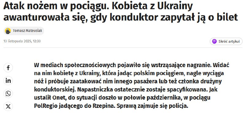 В польском поезде украинка размахивала ножом, кричала матом и на весь вагон пела гимн Украины.