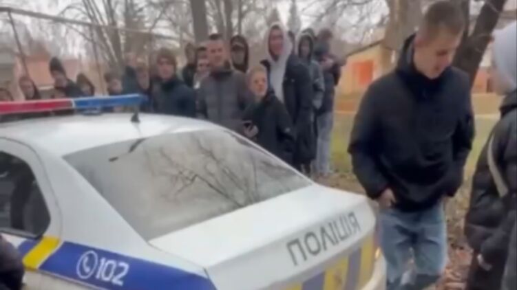 В Полтавской области школьники пытались заблокировать движение полицейского автомобиля, который увозил мобилизованных.