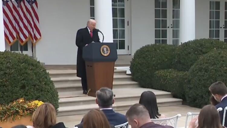 Кадры соответствующего фрагмента выступления американского лидера на торжествах в честь Дня благодарения публикуют политические телеграм-каналы.