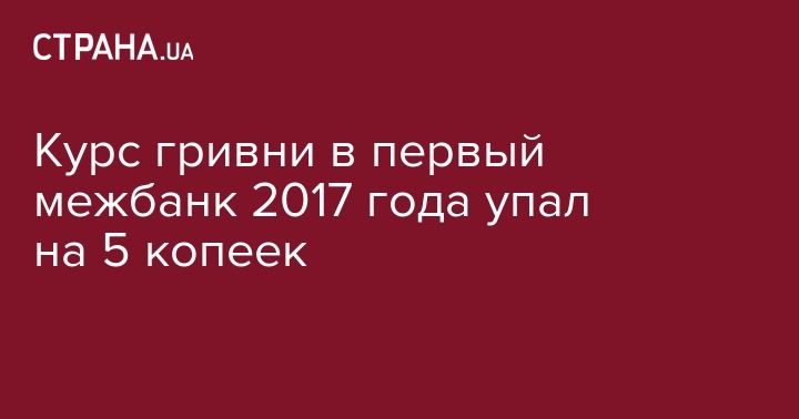 Курс гривни в первый межбанк 2017 года упал на 5 копеек