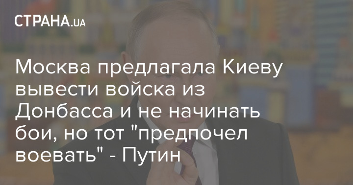 Президент России Владимир Путин сообщил, что российская сторона предлагала Украине вывести войска из Донбасса и не начинать военных действий, однако Киев не согласился. Вероятно, он имел в виду предвоенные события февраля 2022 года, когда Россия признала "ЛНР" и "ДНР".