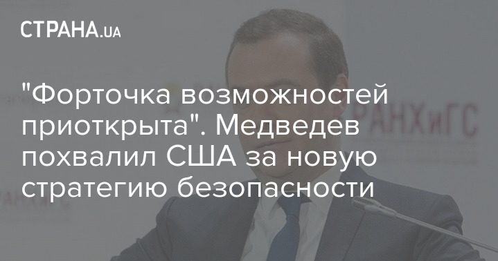 "Форточка возможностей приоткрыта". Медведев похвалил США за новую стратегию безопасности