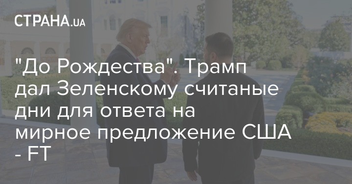 Издание отмечает, что Зеленский сообщил своим европейским коллегам, что в ходе двухчасового телефонного разговора в субботу спецпредставитель Трампа Стив Уиткофф и зять президента США Джаред Кушнер настоятельно требовали от него принятия быстрого решения. Источник, знакомый с предложенными Киеву сроками, сообщил, что Трамп надеется на заключение соглашения "к Рождеству" (то есть до 25 декабря).