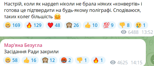 Народный депутат от "Слуги народа" Марьяна Безуглая в свою очередь сообщила, что на фоне следственных действий, которые НАБУ проводит в отношении нардепов, заседание Верховной Рады было закрыто.