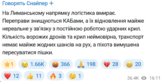 У ВСУ резко ухудшилась ситуация с логистикой на лиманском направлении.