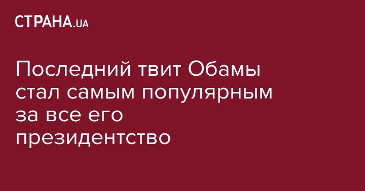 Прощальный твит Барака Обамы на посту президента США стал самым популярным в президентском микроблоге за время его президентства. Об этом сообщает Chicago Sun-Times.