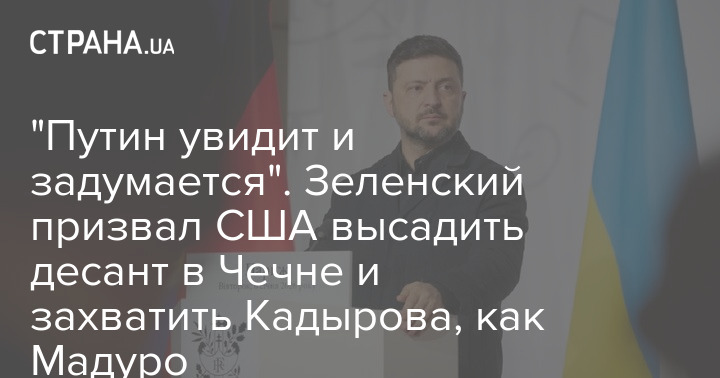"Вот, пожалуйста, вот вам пример с Мадуро. Да, провели операцию. Результат все видели, весь мир. Быстро это сделали. Ну, пусть они сделают какую-то операцию с этим, как его, с Кадыровым, с этим убийцей. Может, тогда Путин увидит это и задумается", - добавил Зеленский.