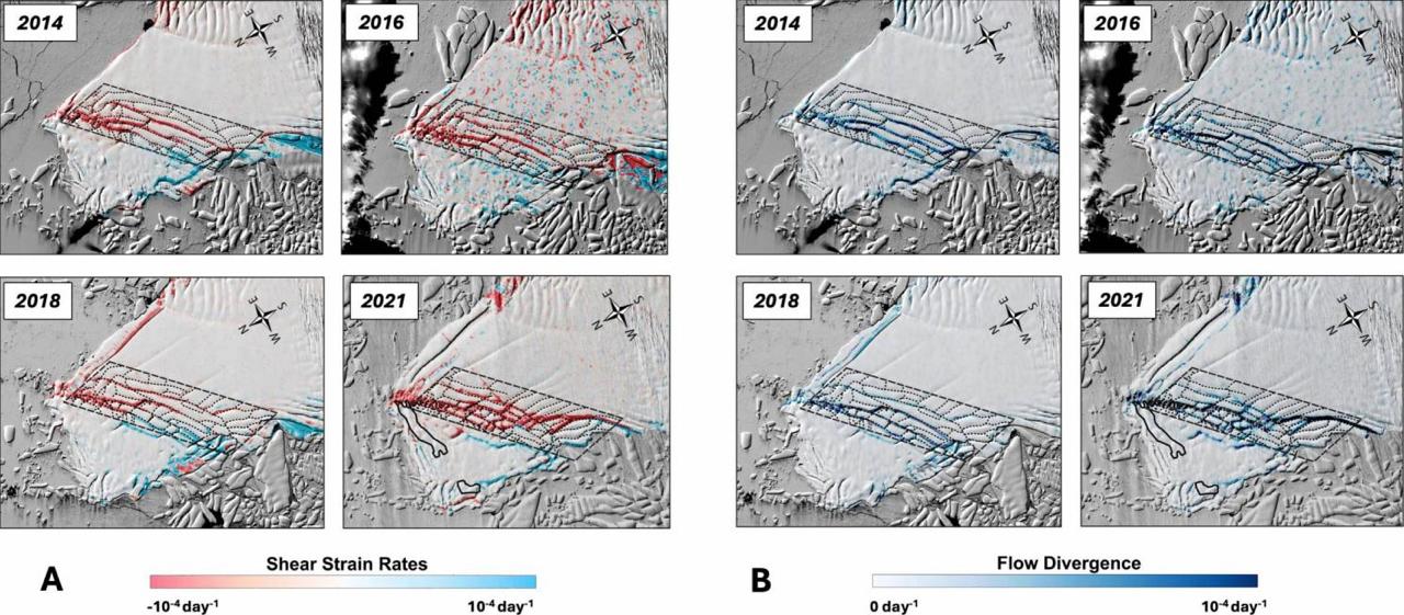 Авторы работы, которых цитирует издание Sci Tech Daily подчеркивают, что процесс носит самоподдерживающийся характер. Чем быстрее движется лед, тем сильнее он трескается, а новые трещины, в свою очередь, еще больше ускоряют его движение.