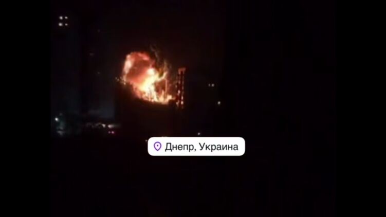 В результате удара по Днепру возник сильный пожар. Кадр из видео