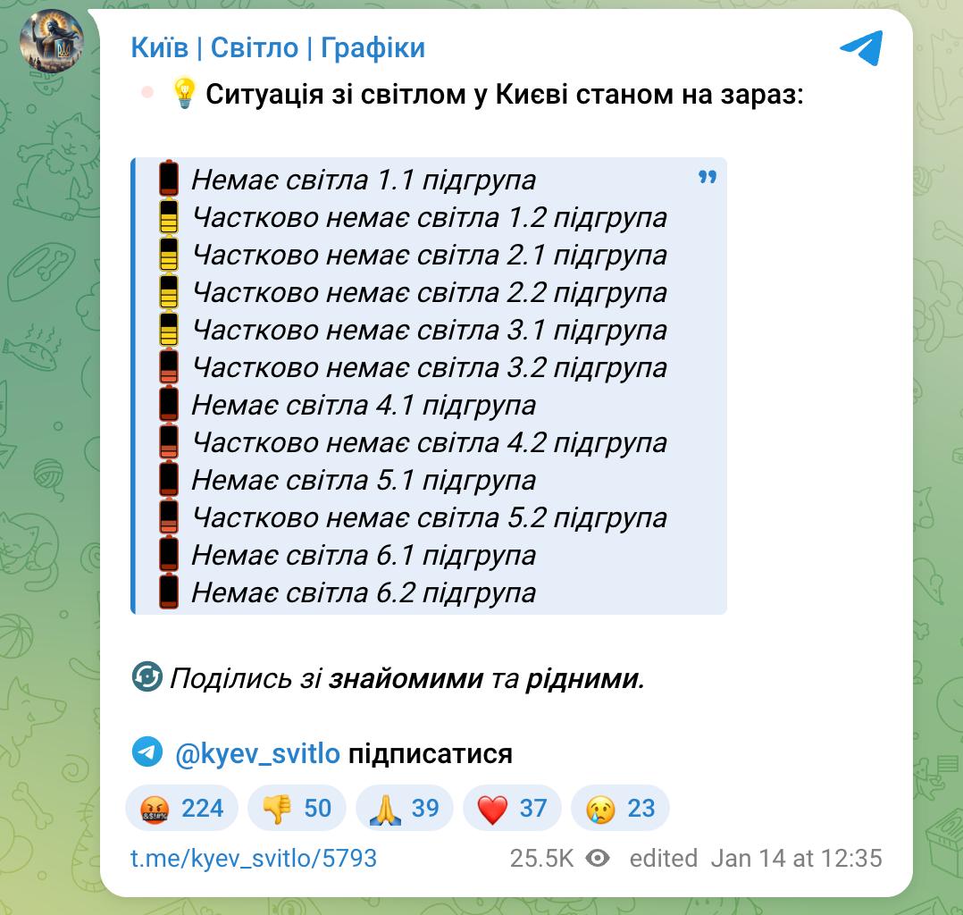 Между тем, как свидетельствуют данные столичных пабликов, отслеживающих ситуацию со светом, в Киеве наступил второй день блэкаута.