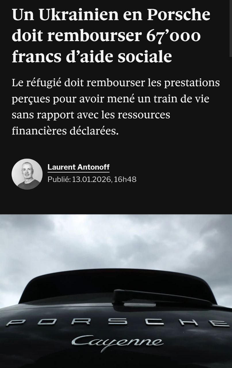 В частности, у мужчины была Porsche Cayenne стоимостью более 37 тысяч франков (примерно 38 тысяч евро). Он также совершил многочисленные поездки по Европе и имеет несколько банковских счетов с открытыми депозитами, в том числе в евро.