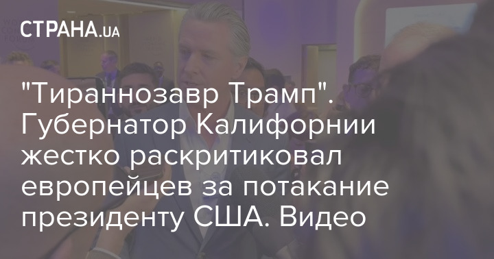 "Тираннозавр Трамп". Губернатор Калифорнии жестко раскритиковал европейцев за потакание президенту США. Видео