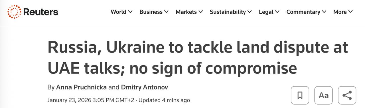 Напомним, что вопрос территорий сегодня будет основным на переговорах в Абу-Даби. Украинский президент Владимир Зеленский отказывается выводить войска с востока, по крайней мере публично.