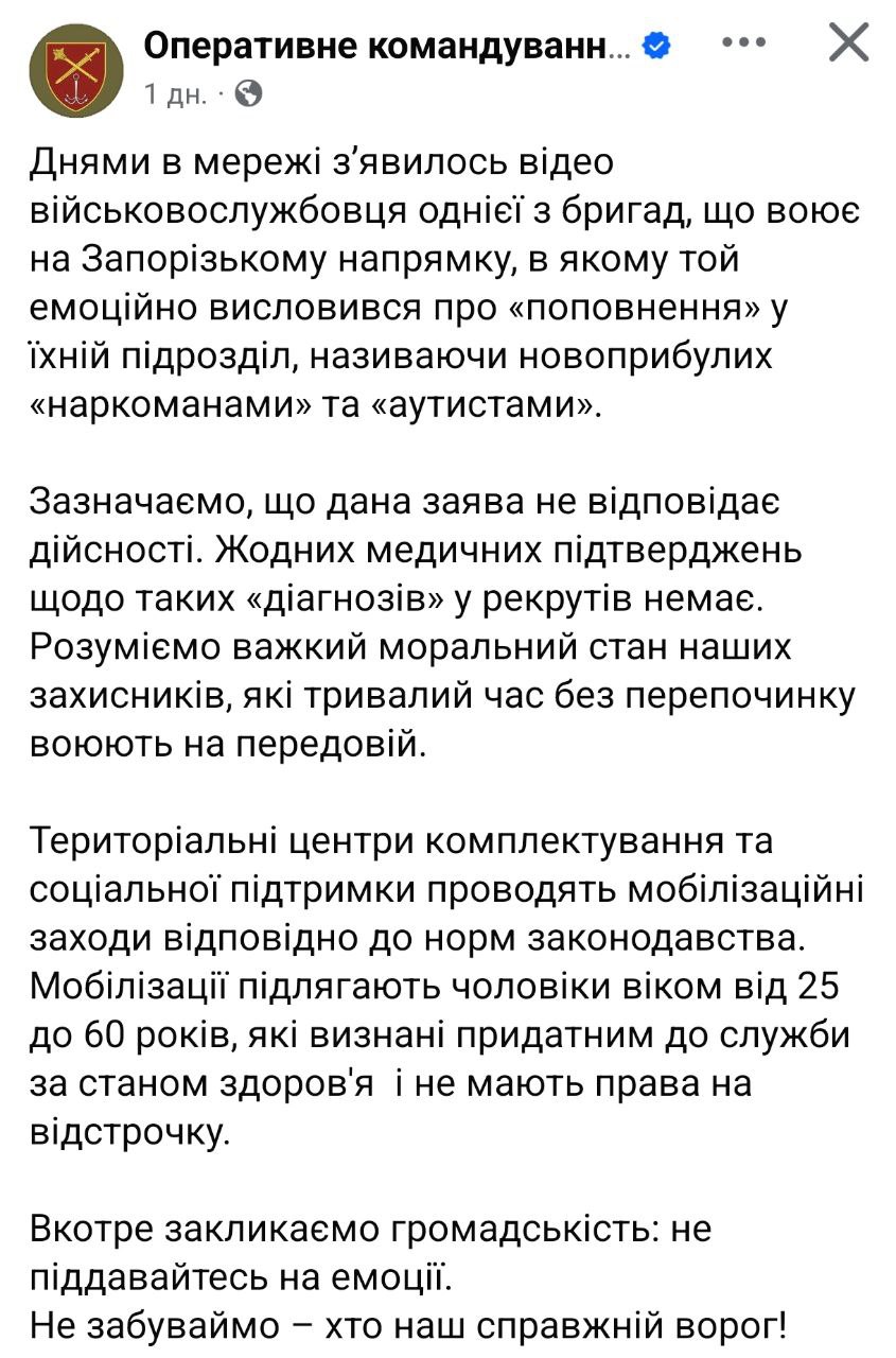 В свою очередь оперативное командование "Юг" подтвердило, что видео действительно записано военнослужащим одной из бригад, воюющих в Запорожской области.