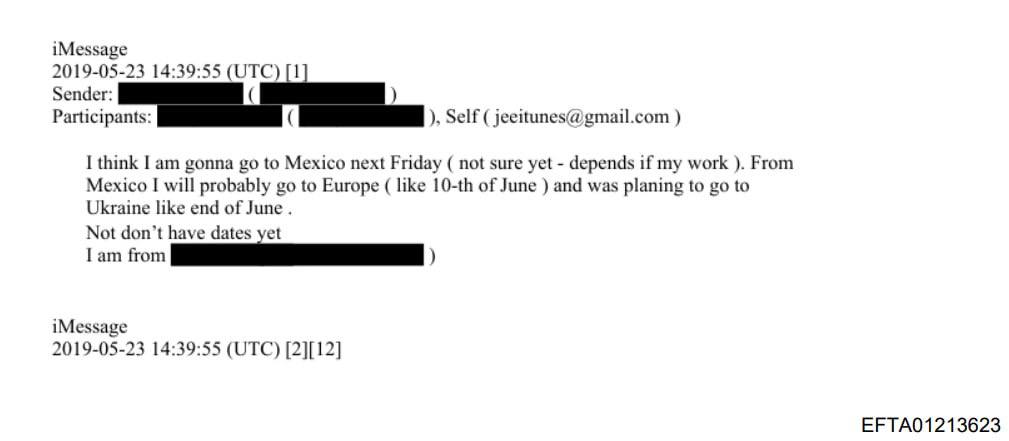 "Я думаю, что поеду в Мексику в следующую пятницу, из Мексики я полечу в Европу (примерно 10 июня), а потом в конце июня я планировал поездку в Украину", - писал Эпштейн.