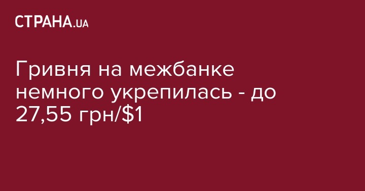 Гривня на межбанке немного укрепилась - до 27,55 грн/$1