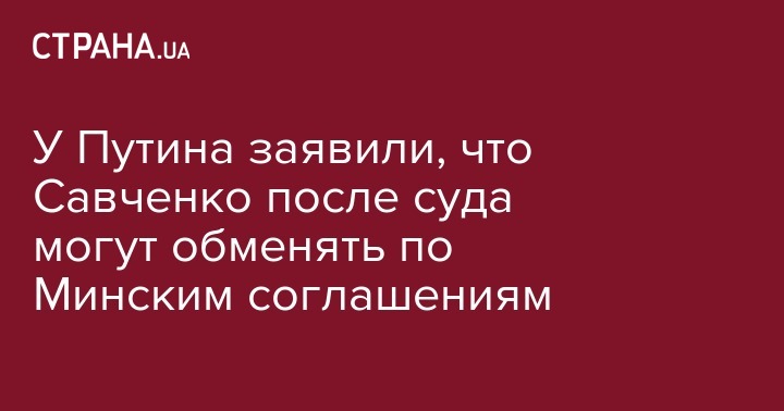 У Путина заявили, что Савченко после суда могут обменять по Минским соглашениям