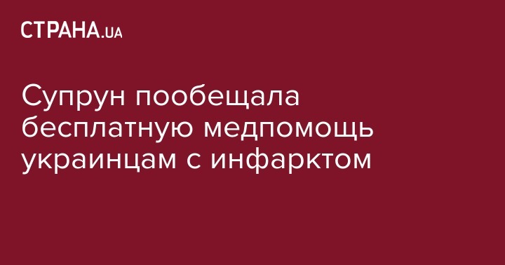 И.о министра здравоохранения Ульяна Супрун заявила, что МОЗ работает на проектом создания кардиологических центров для проведения стентирования и лечения инфаркта, где украинцам будут оказывать помощь бесплатно. Об этом сообщает "Интерфакс Украина".