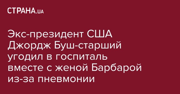 Экс-президент США Джордж Буш-старший и его жена Барбара были госпитализированы из-за пневмонии, сообщает CNN.