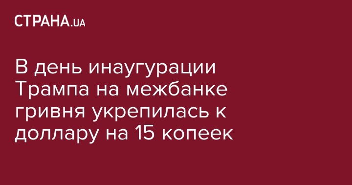 В день инаугурации Трампа на межбанке гривня укрепилась к доллару на 15 копеек