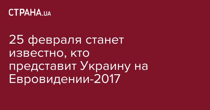 25 февраля, украинцы узнают имя артиста, который в мае представит Украину на всемирном песенном конкурсе "Евровидение-2017". Об этом сообщает оргкомитет конкурса.