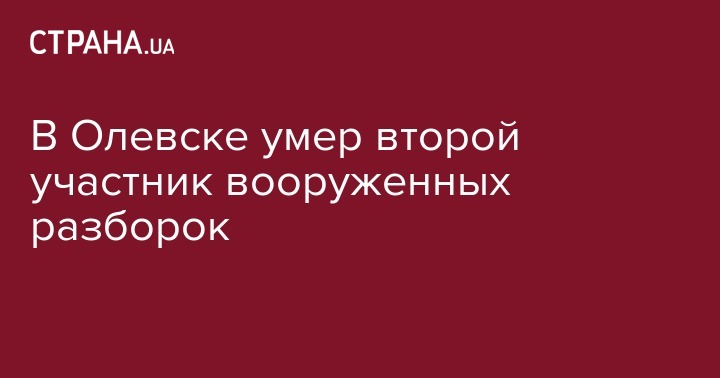Журналист телеканала "Интер" Инна Билецкая сообщила, что в больнице Олевска умер еще один участник недавних вооруженных разборок. Об этом она написала в Facebook.