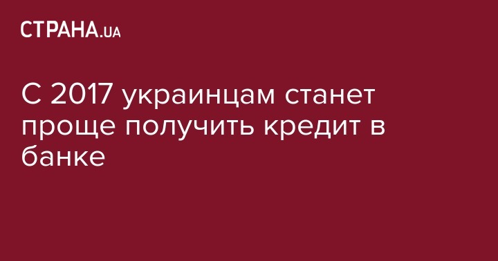 С 2017 украинцам станет проще получить кредит в банке