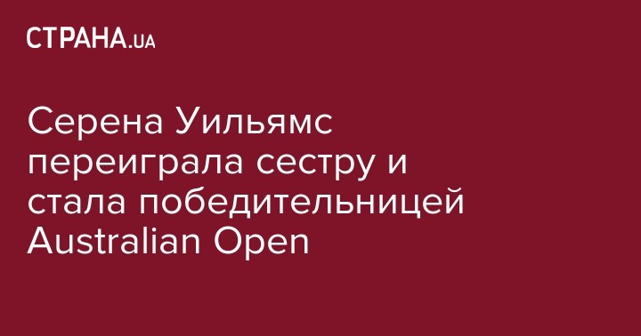 Американская теннисистка Серена Уильямс обыграла свою старшую сестру Винус в финале открытого чемпионата Австралии. Об этом сообщает пресс-служба организаторов турнира.