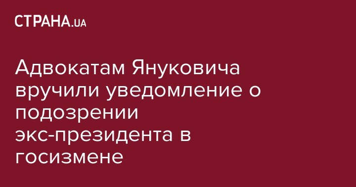 "Сегодня в 15.44 Главной военной прокуратурой сообщено защитникам Януковича об окончании специального судебного расследования и о вручении подозрения экс-президенту в совершении государственной измены, в пособничестве представителям власти РФ с целью изменения границ и государственной границы Украины, а также в пособничестве ведению агрессивной войны против Украины. Одновременно нами начат процесс ознакомления с материалами досудебного расследования и доказательствами, которые были собраны во время досудебного расследования", - сказал Кравченко.