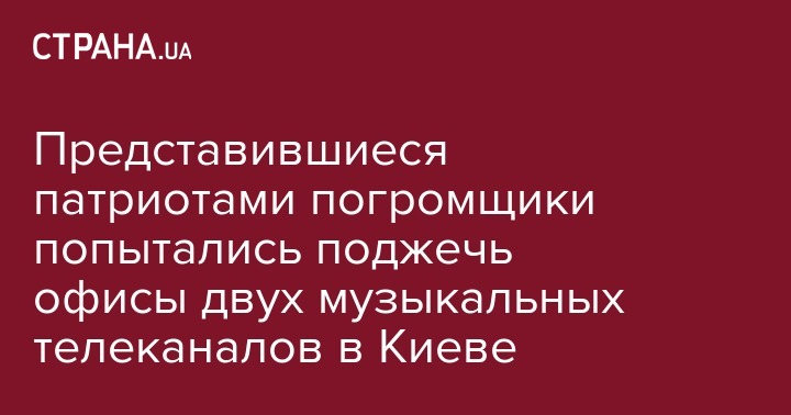 Представившиеся патриотами погромщики попытались поджечь офисы двух музыкальных телеканалов в Киеве