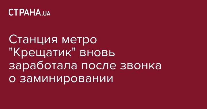 В воскресенье, 5 февраля, по состоянию на 16:00 станция метро "Крещатик" вновь заработала после сообщения о заминировании. Об этом в Facebook сообщает пресс-служба киевского метрополитена.