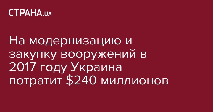 Кабмин заложил в бюджет на 2017 год расходы на закупку и модернизацию вооружений для ВСУ в размере 5,6 миллиарда гривен. По текущему курс Национального банка это составляет примерно $208 082 000.