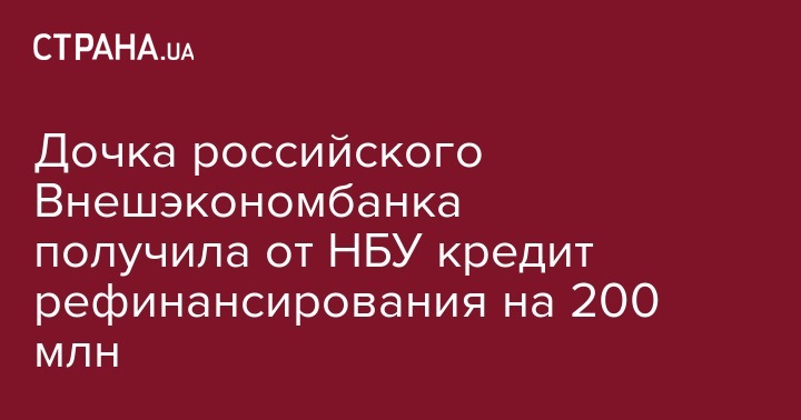 Дочка российского Внешэкономбанка получила от НБУ кредит рефинансирования на 200 млн