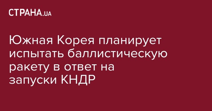 Южная Корея планирует испытать баллистическую ракету в ответ на запуски КНДР