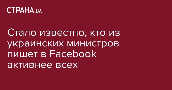 Комитет избирателей Украины назвал самых активных пользователей Facebook среди украинских министров, а также подсчитал, что 70% их сообщений написаны в рабочее время. Об этом говорится в отчете КИУ, размещенном в Facebook.