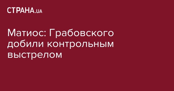 Заместитель генерального прокурора Украины – главный военный прокурор Анатолий Матиос заявляет, что, по предварительным данным, адвокат российского спецназовца Александра Александрова Юрий Грабовский был убит насильственным путем с достреливанием из огнестрельного оружия. Об этом сообщает "Интерфакс-Украина".