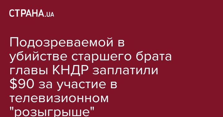 Подозреваемой в убийстве старшего брата главы КНДР заплатили $90 за участие в телевизионном "розыгрыше"
