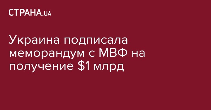 Украина подписала меморандум с МВФ на получение $1 млрд