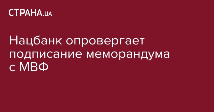 "Нацбанк Украины опроверг сообщение агентства Reuters о том, что Украина подписала обновленный меморандум с МВФ. Как отметил в эксклюзивном комментарии нашему каналу руководитель пресс-службы НБУ Валерия Селезнева, меморандум с МВФ еще не подписан, но это будет сделано в ближайшие дни", - сообщает телеканал.