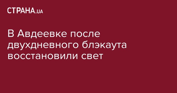 В Авдеевке сегодня около 15 часов восстановили электроснабжение после двух дней без света. Об этом на своей странице в Facebook сообщил глава Донецкой военно-гражданской администрации (ВГА) Павел Жебривский.