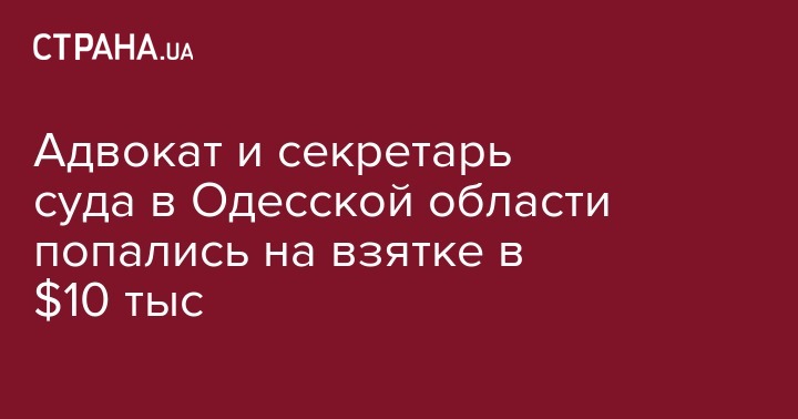 Сотрудники Службы безопасности Украины совместно с прокуратурой разоблачили во взяточничестве адвоката и секретаря (консультанта) одного из районных судов Одесской области.