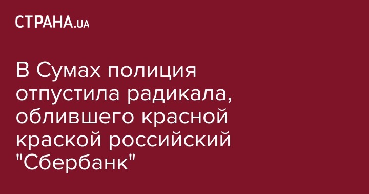 Напомним, что в субботу четверо активистов общественной организации "Традиция и порядок" обклеили здание, где находится офис "Сбербанка" в Сумах листовками с надписью "Внимание!!! Сбербанк убивает". Также они разлили красную жидкость возле входа в банк и наклеили плакат "Долой российское из Украины" на входную дверь офиса.